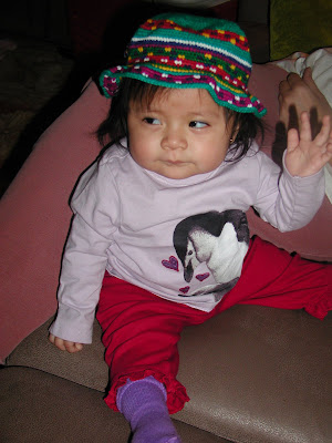 I love the crying fit! Maya did the same thing with her Guatemalan hat! I could not get her to keep it on. I kept putting it back on for pics, and she got madder and madder, until she was crying too! Too cute!